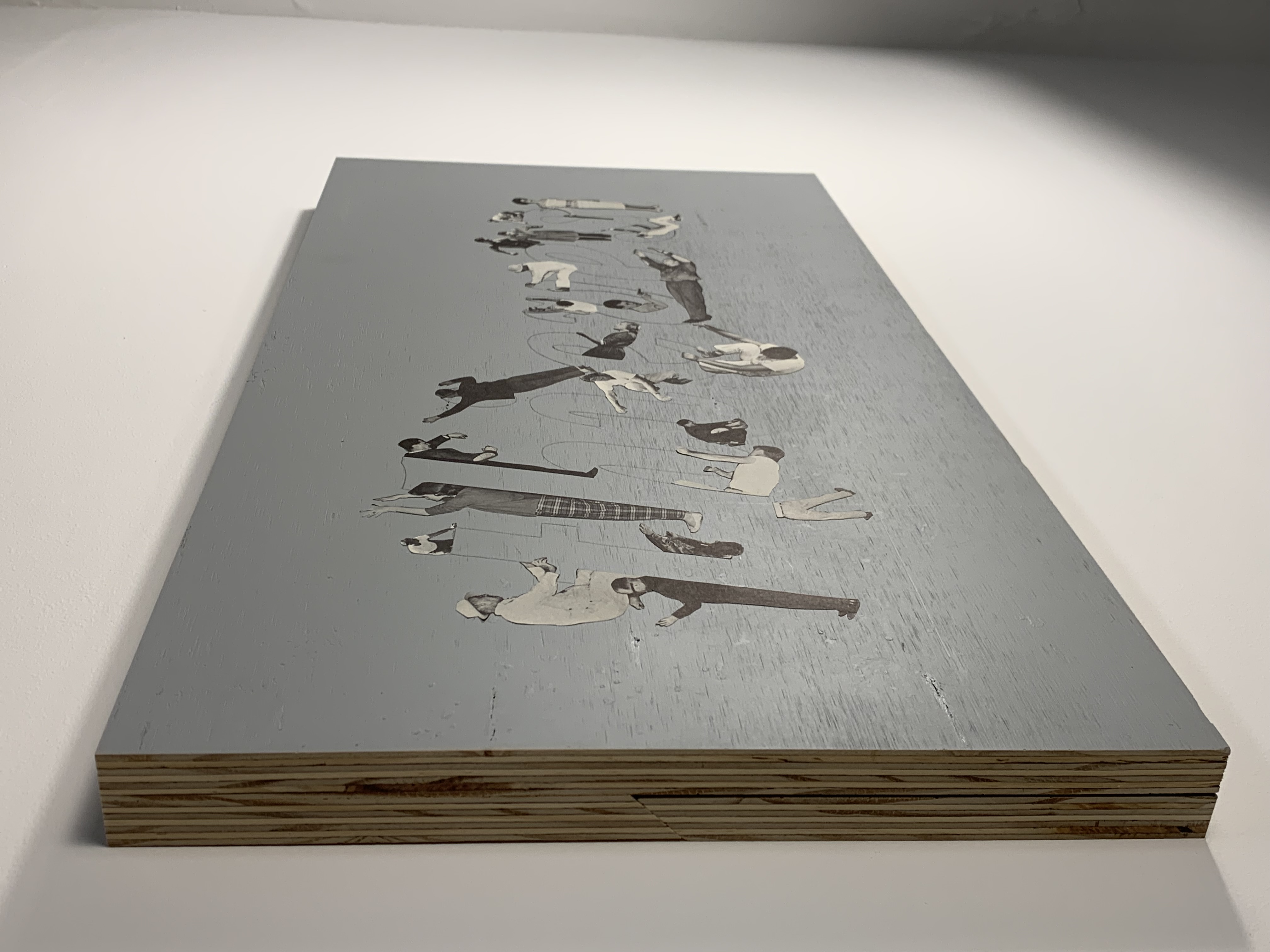 Thieves 2025 | plywood, paint, pencil, National Geographic magazines ← to previous Object to next Object →